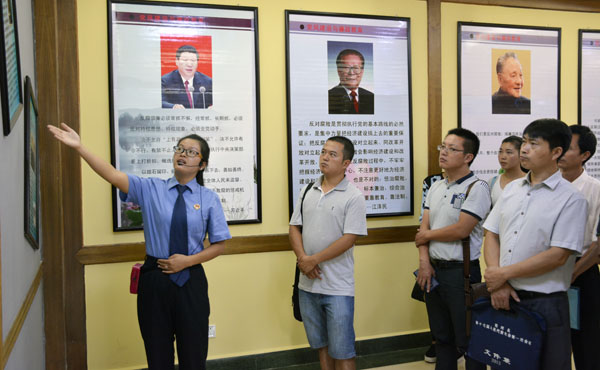 讨论结束,参会人员按计划前往县检察院在县检察院讲解员的带领下,参会人员认真参观了反腐倡廉警示教育基地。在了解检察院历史文化的同时,回顾了党反腐倡廉的风雨历程以及各时期、各地方发生的一个个真实的腐败案例,特别是当地一些典型的案例让参观人员深受教育。