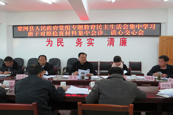 12月28日,梁河县人民政府组织召开“三严三实”和“忠诚干净担当”专题教育民主生活会集中学习、班子对照检查材料集中会诊及交心谈心会。梁河县人民政府县长、党组书记李奇同志主持会议并作重要,县政府处级党组成员、非党处级领导,县产业协调督导组和相关工作人员参与学习。