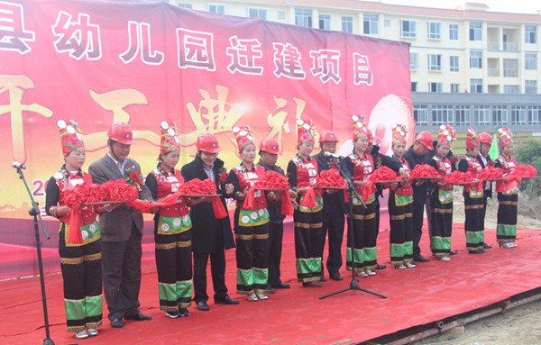 仪式上,首先由景智富副县长致辞,他说县幼儿园迁建项目的开工,体现了我县重视教育发展和办人民满意教育的决心,这是关乎全县人民的一件大事、喜事,它标志着我县幼儿园迁建项目全面启动,进入实质性的施工阶段,同时也标志着县幼儿园在不久的将来,跻身全州现代化、标准化、规范化的优质示范幼儿园行列!他要求施工方要坚决树立诚信经营、质量第一的理念,在安全生产的前提下,抢时间,争速度,提高工程建设质量,力争把项目建成一流工程、样板工程。
