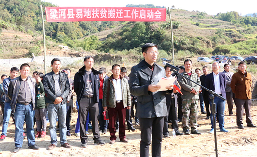 县重大项目产业督导协调组组长梁照佩、副县长寸时雄分别在搬迁点宣布“梁河县易地扶贫搬迁项目正式启动”。