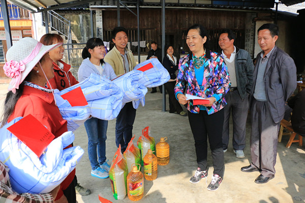 图为州人大常委会副主任、州总工会主席孙春兰在上河东村慰问