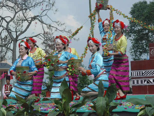 庆典仪式上,来自梁河县直文艺代表队和九保、曩宋、河西、芒东等乡镇村寨的演出团体,为现场观众表演了《阿昌窝罗多快活》、《阿昌山歌》、《阿昌欢歌》、《阿昌蹬窝罗》、《阿昌族狮子舞》、《阿昌敬酒舞》、《采春茶》、《十七大精神传边寨》、《情系葫芦丝之乡》等精彩的民族歌舞节目。文艺表演结束后,进行了窝罗舞大联欢。参加活动的州、县领导和来宾纷纷加入到窝罗舞联欢的队伍中,伴随着铿锵的锣鼓声,与阿昌族同胞们一起跳起欢快的阿露窝罗舞,共同祝愿阿昌山寨的明天更加美好。