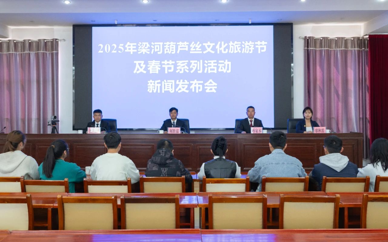1月23日,梁河县2025年葫芦丝文化旅游节及春节系列活动新闻发布会在县政府8楼会议室召开,县委副书记、县人民政府县长何胜富向新闻媒体介绍梁河葫芦丝文化旅游节及春节系列活动筹备情况,县政府副县长彭海峰、县文化和旅游局局长回答记者提问,春城晚报、德宏融媒、梁河融媒记者参加新闻发布会,县委常委、县委宣传部部长孙家本主持新闻发布会。