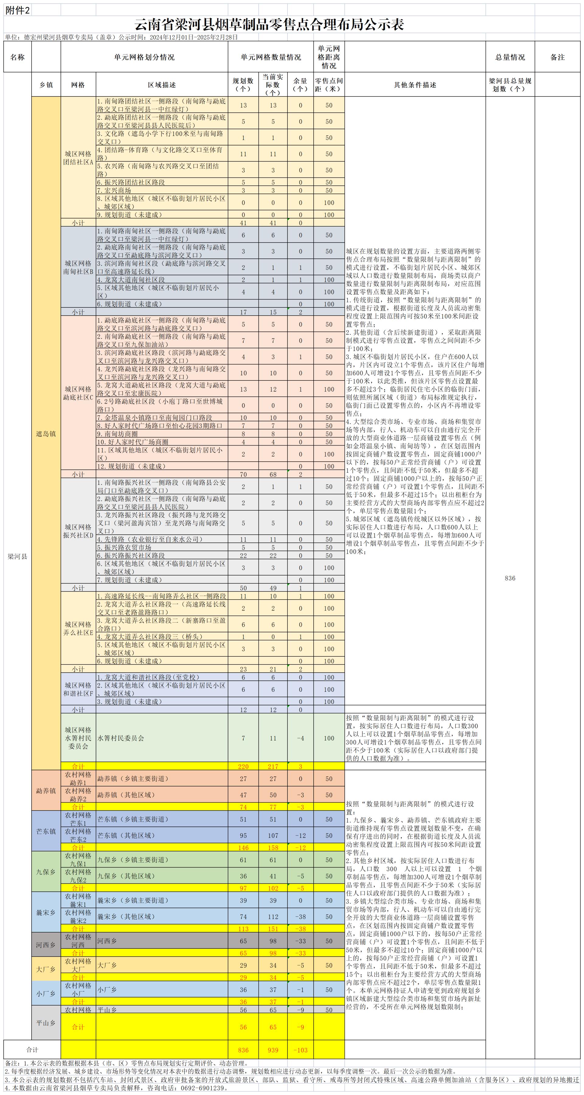 第十一条 本县零售点合理布局规划数及规划区域、单元网格等情况详见《云南省梁河县烟草制品零售点合理布局公示表》(附件2)及《云南省梁河县烟草制品零售点合理布局网格示意图》(附件3)。