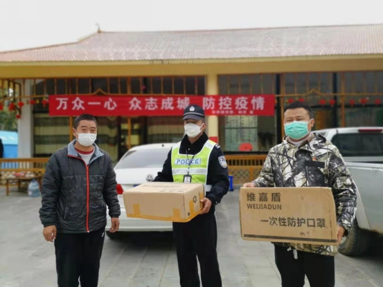 芒轩村的妇女为堵卡点工作人员送去口罩和食物。