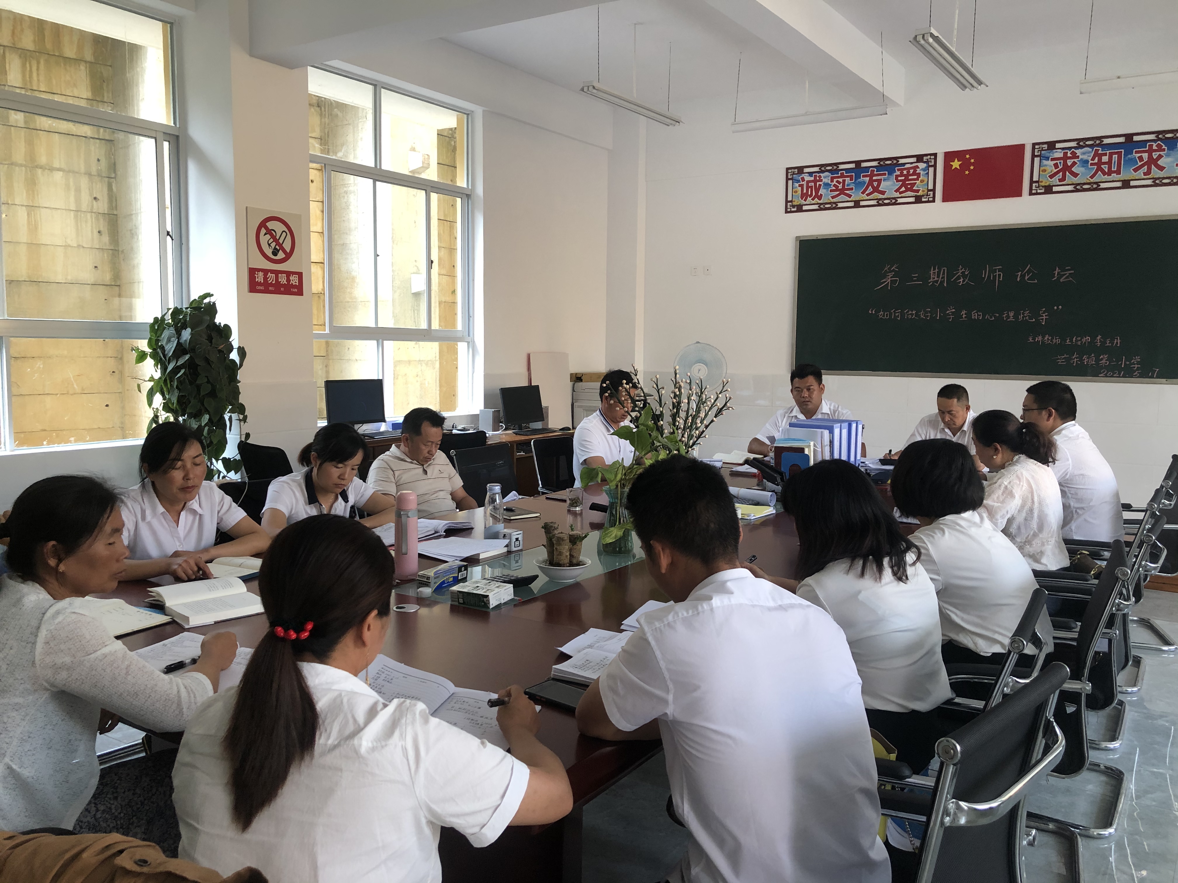 健康的心理是人生成功进步的阶梯。在实施素质教育和进行新课程改革的今天,提高了教育教学质量同时,学生心理健康问题也日渐凸显。面对学生日渐突出的心理问题,2021年5月17日,芒东镇第二小学开展了以“如何做好小学生的心理疏导”为主题的第三期教师论坛。本次论坛蚌有志校长主持,王绍帅、李玉丹两位老师主讲,其他教师作交流发言。