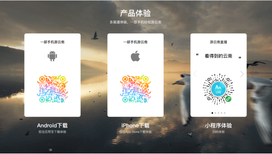“一部手机游云南”依托“互联网+旅游服务”,通过游云南App、微信公众号和微信小程序,全面覆盖游客在云南的游前、游中、游后的各项需求,满足和提升游客吃住行游娱购的需求和体验,并通过诚信体系、投诉平台的建设,让游客全流程省心、安心、放心。