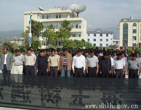4月21日,根据中央、省、州统一部署,梁河县委、县政府组织县委大楼、政府大楼内的所有部门的干部职工为青海玉树遇难同胞举行哀悼活动。