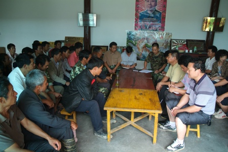 种竹之后,县委书记杨向宏到勐竜村委会与勐竜村全体党员进行了座谈。勐竜村党员向杨书记汇报了该村发展之中遇到的问题以及需要县委、县政府帮助解决的困难。杨书记一边认真倾听大家的发言,一边和大家探讨勐竜村的发展思路。杨向宏指出,勐竜村要发展,一是要村民要更新观念,一定要打破小农经济意识的束缚,如果一个家庭什么农作物都种,什么家畜都养,什么经济林果都发展,最后,什么产业也抓不好,经济收入还是搞不上去。只有走专业化、规模化的产业路子,才能很快富起来。二是农村党员要时刻起到先锋模范作用,要带领广大农民走专业化、规模化的产业致富路。三是村党支部要加强组织建设,增强支部的战斗堡垒作用。在“创先争优”活动中,勐竜村两委要发扬成绩,争创一流。通过开展创先争优活动,使勐竜村今年的农民收入增长率达到30%以上,吸毒人员下降20%,无超生、超怀,抢生,在明年的绩效考核中力争拿到一等奖。