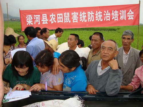 孕穗期是水稻鼠害高峰期,害鼠咬食茎基部,使稻穗形成枯穗;或将穗颈咬断,啃剥孕穗后的嫩穗,造成缺穗,对水稻产量有很大的影响。为减轻鼠害对水稻产量的威胁,梁河县植保站在做好前期调查的基础上加强水稻鼠害防治工作,并于