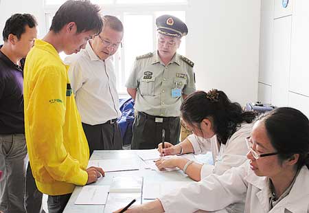 体检区内,随处可见身着制服的人武部干事和县医院医护人员正有条不紊的对预征对象进行编号、编组,并执行专人传递体检表格逐组进行体检;体检医生则认真对照体检标准,严格执行“谁体检、谁签字、谁负责”的原则,对预征对象进行了内科、外科、五官科、胸透等科目的全面检查;县禁毒大队工作人员还对174名预征对象进行了尿检,通过各部门的通力合作,切实把好体检关,确保向部队输送优质兵员。(李娟 文/图)