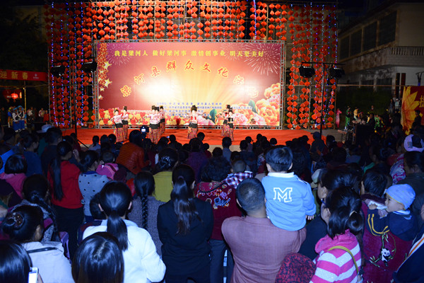 来自遮岛镇各个社区及阿昌族文化传播有限公司的演员们,分别表演了舞蹈《中国吉祥》、《美梁河》,民族歌舞景颇情》、《江三木罗》、《绿色的田野》,花灯歌舞《不为兰花我不来》、《游春》,健身舞《最炫民族风》、《律动》等节目,吸引了数百人群众驻足观看。(尹凯帮文/图)