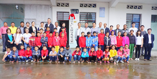 图为参会领导与“留守儿童之家“师生合影留念