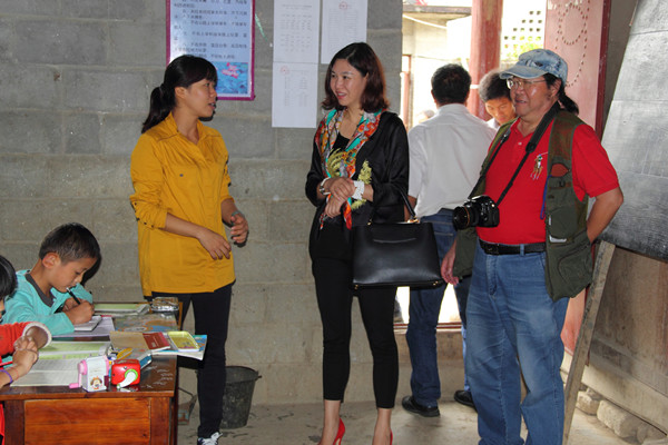 在县委常委、副县长郑瑜和县教育局局长余文龙的陪同下,尹绍平先生、尹晓慧女士先后深入大厂乡大生基小学、大厂乡中心小学、大厂中学和曩宋阿昌族乡南林小学,探访了在那里工作、学习和生活的师生们。当看到孩子们在异常艰苦的环境中,甚至住在危楼里仍然能快乐地学习生活时,尹绍平先生、尹晓慧女士感到很欣慰,同时也深表痛心。