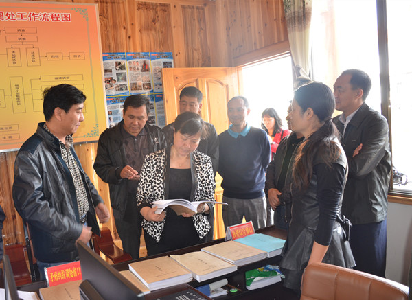 期间,赖副主任一行参观了乡政府平安乡镇文化墙、宣传栏后,来到综治维稳中心、为民服务中心翻阅了平安工作的台账等文档资料,在接下来的座谈会上,还听取了乡综治维稳建设工作汇报。