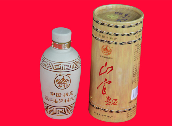 帮钙酒,是傣族传统的优质糯米酒。产地梁河县勐养镇帮盖村,地处远离城镇的群山白云之中,清澈的勐养江沿村而过,村后山林茂密,古树参天,龙洞山泉四季清洌甘凉。帮盖特殊的地理位置,使其盛产优质的糯米及更为名贵的紫糯米。好山、好水、好米、好工艺,酿出傣家的好酒。