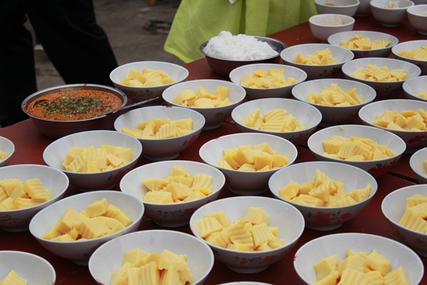 蚌摆,芒东镇帮别村委会的一个自然村,位于梁河县芒东镇西边,距离村委会1 公里,距离芒东镇2.15公里处。芒那公路沿线上一道显目的寨门打开了一个民族村寨的希望。在这里,一个美丽的乡村雏形已经形成,一场美食盛宴正在上演。(下面列举三十余种特色小吃中的其中四种)