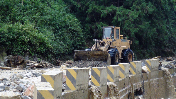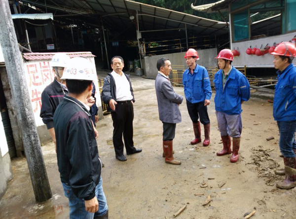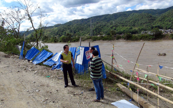 交通部门在受灾点查看灾情