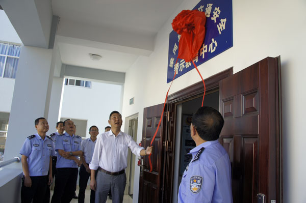 10月23日下午,梁河县道路交通安全警示教育中心揭牌仪式在县公安局交警大队举行,县委常委、政法委书记刘云江,县政府副县长、公安局长闵勇进,县委政法委副书记赵兴座,县公安局党委委员、副局长张俊,交警大队民警、驾驶员代表、驾校学员代表共40余人参加了揭牌仪式。