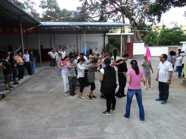 活动中,开展了大比拼、共同分担、扶棍子、变形虫赛跑、蜘蛛网、击鼓传花等6项内容,参与的80多名职工被随机分成6个组,整个过程把妙趣横生的游戏同工作、生活有机地联系在了一起,从一开始设计自己团队的队名、选出队长、喊出口号,就预示了整个过程离不开团结协作和集体智慧与力量。所有的活动,无论领导还是一般职工,大家都以一种积极的心态参与游戏,倾情融入,有出力的﹑有出谋划策的﹑有监督警示的,活动现场组织有序,笑声爆棚,激发出队员高昂的参与热情和拼搏创新的动力,使团队更富凝聚力。