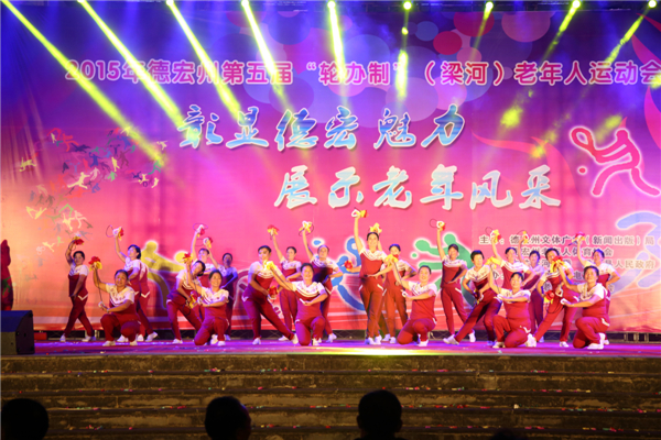 11月9日晚,由州文体广电(新闻出版)局、州老年人体育协会、中共梁河县委、梁河县人民政府主办,梁河县文体广电旅游局、梁河县老年人体育协会承办的德宏州第五届“轮办制”(梁河县)老年人运动会在梁河县金塔广场隆重开幕。
