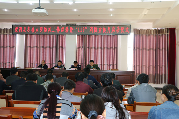 11月6日,梁河县举行冬春火灾防控工作暨“119”消防宣传月启动仪式,县人民政府副县长、公安局长、县消防委主任闵勇进出席,并就当前当前冬春火灾防控形势作了安排部署。