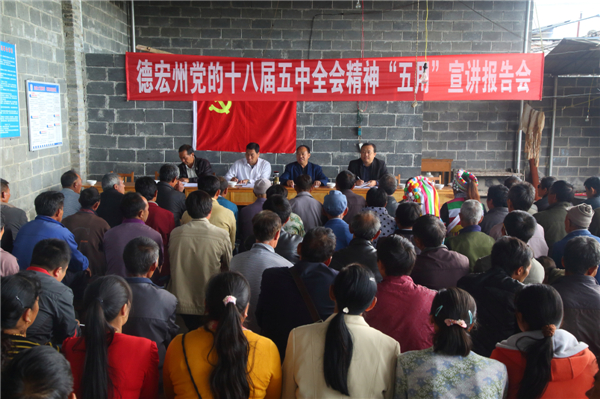 11月27日,党的十八届五中全会精神“五用”宣讲报告会在九保阿昌族乡安乐村举行,州“五用”宣讲团成员赵家培作专题宣讲,安乐村党员干部及各族群众代表共100余人到场聆听。