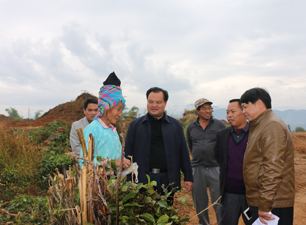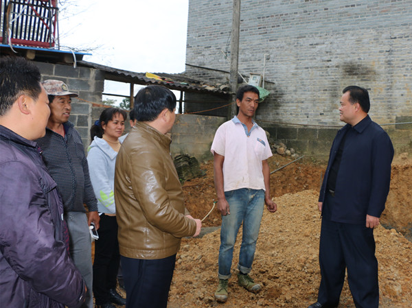 来到关璋老寨子拆除重建户曹文相家中,李奇县长与正在筹建新房的户主攀谈起来,“拆除的老房子住了多少年,房子拆了住哪里”、“新房盖几层,计划投入多少钱”、“知不知道拆除重建可以享受哪些政策”。得到答复后,李奇县长饶有兴致地给曹文相算起了经济账,他说:“你是拆除重建户,可以享受整乡推进整族帮扶资金6万元、安居工程补助资金2万,如果钱不够,还可以向信用社申请最高限额6万元的低息贷款,这样建房的钱就基本解决了”。李奇县长还表示,在种养殖方面还有相关扶持配套政策,希望阿昌族群众学习政策,用活政策,享受政策带来的实惠。同时李奇县长对曩宋乡工作提出了要求,一是加快新村建设进度,按照规划方案建设美丽新村;二是加快居民改造进度,扩大居民改造覆盖面;三是加快学校建设进度,尽快让学生进驻就读;四是加强烟苗管理,加快烟田准备,确保按时完成烟叶种植任务。