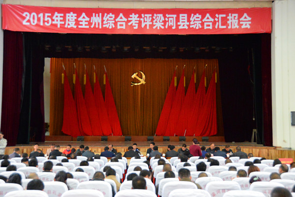 3月1日上午,我县召开2015年度全州综合考评梁河县综合汇报会。