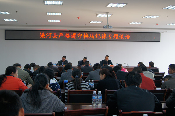 谈话要求,各级党员领导干部要提高认识,增强遵守换届纪律自觉性和坚定性,严明纪律,确保换届工作风清气正,调整心态,正确对待“进退留转”,从严查处坚决整治换届不正之风,为换届工作健康顺利进行提供充分保证,为“十三五”顺利开局提供坚强的组织保证。