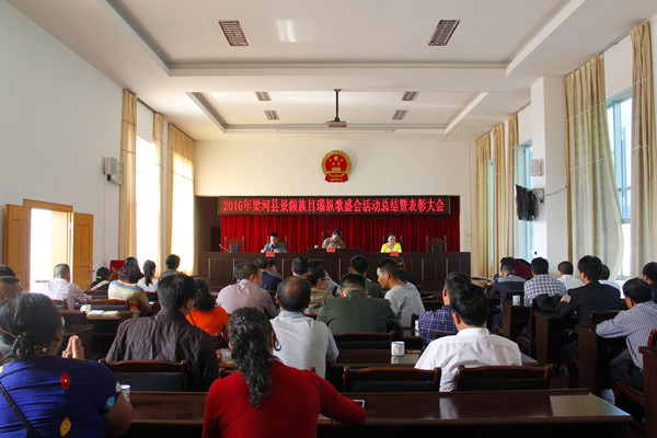 3月11日下午,梁河县2016年景颇族目瑙纵歌盛会组委会在县人大四楼会议室召开会议,全面总结梁河县2016年景颇族目瑙纵歌盛会各项工作开展情况,表彰在2016年梁河县景颇族目瑙纵歌盛会期间涌现的优秀工作者。