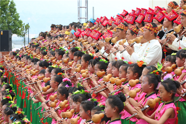 梁河县是葫芦丝音乐的发祥地,有着厚重的葫芦丝文化积淀,先后孕育了龚全国、哏德全等一大批葫芦丝制作和演奏大师。2006年,梁河县被云南省政府命名为“葫芦丝之乡”;2011年,梁河县被国家文化部命名为“中国民间民族文化之乡”;2014年,梁河葫芦丝获国家地理标志保护产品认证,成为国内首个获此殊荣的少数民族乐器产品。今年2月以来,梁河县全面启动了申报工作,并为此付出了艰辛的努力。“世界上最多人同时演奏葫芦丝”世界纪录的取得,将进一步提升葫芦丝之乡梁河的知名度和美誉度,对梁河葫芦丝文化的传承与保护,促进全县旅游文化事业的发展产生深远的影响。