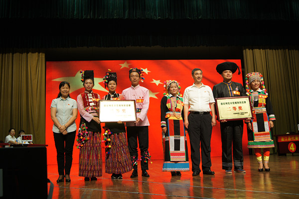 4月29晚,德宏州党章党规知识竞赛决赛在芒市会堂报告厅隆重举行。州委副书记何汝利出席竞赛活动并致词。州委常委、州委宣传部部长李燕兰,州委常委、州委组织部部长王明山,州委常委、州纪委书记贺勇,州人大常委会副主任李有升、州政协副主席毛勒端出席活动并为获奖参赛队颁奖。梁河县参赛代表队经过层层角逐,最终获得德宏州学习党章党规知识竞赛二等奖。