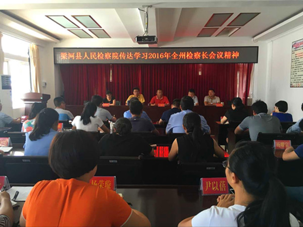 8月8日,梁河县检察院召开全院干警大会,王瑞兴检察长及时传达全州检察长座谈会精神,并对梁河县检察院下一步工作作出要求。