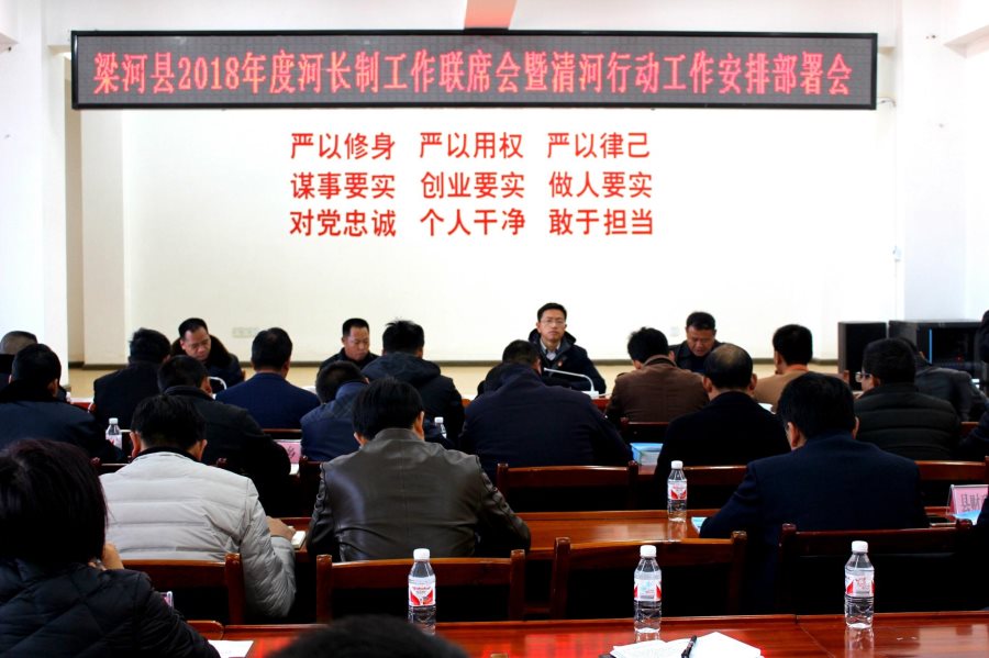 为认真贯彻落实中央和省、州、县关于全面推行河长制的重大决策部署,全面贯彻省河长制领导小组暨省总河长会议和州委七届四次全会精神, 2018年1月31日上午,在梁河县人民政府9楼会议室召开2018年度河长制工作联席会暨清河行动工作安排部署会。县委、县人大、县政府、县政协相关领导出席会议,县河长制工作领导小组成员单位主要负责人及各乡镇主要领导、村级河长代表共40余人参加了此次会议。