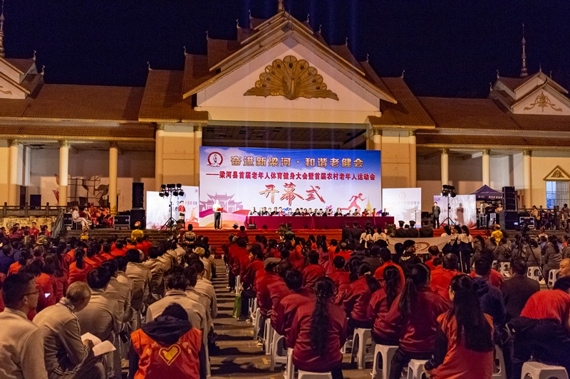 10月28日20时,梁河县首届老年人体育健身大会暨首届农村老年人运动会在金塔广场开幕。来自全县各乡镇、县直各单位、企业的14个代表团460名老年人运动员欢聚一堂,进行为期三天的体育比赛,充分展示梁河老年人老有所为、老有所乐、和谐友谊的独有风采。