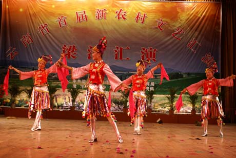 举办新农村文艺汇演,旨在活跃基层群众文化,繁荣发展农村文化艺术,丰富广大农民群众的精神文化生活,加快社会主义文化的大发展、大繁荣。文艺汇演活动在小厂乡代表队表演的舞蹈《越来越好》中拉开序幕,来自全县9个乡镇和县文体局业余演出队为现场1000多名观众演出《阿昌姑娘爱戴花》、《家乡新貌》、《歌唱新农村》、《十大姐赞新农村》、《欢乐的嘎光》、《大山的儿女》、《太阳照在阿昌山》、《阿佤人民唱新歌》、《八荣八耻进农家》、《扶贫政策真是好》、《南甸美》、《天地喜洋洋》、《今年又是丰收年》等20个反映农村新风尚、新面貌、新生活为主要内容的精彩节目。以歌舞、花灯、快板、小品、器乐合奏、配乐诗朗诵等形式,热情讴歌改革开往三十周年来农村取得的巨大成绩,展示了全县社会主义新农村建设和精神文明创建的成果。整个文艺汇演紧扣新农村建设主题,洋溢着浓烈的乡土气息和强烈的时代特色。