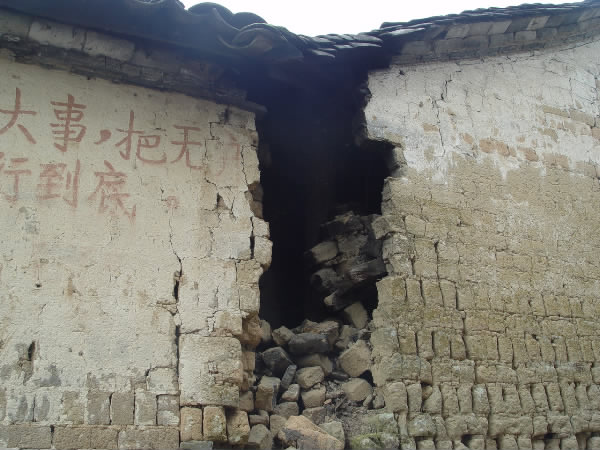 在平山乡上河东界端自然村,许多房子在震后,墙体出现不同程度开裂、变形,地基移位,峰火墙倒塌,灾情严重。特别是村民杨茂元家,墙体严重变形,发生倾斜,与另外一家的墙贴在了一起,楼板与墙体分离了10多厘米。此情此景上人触目惊心。乡党委书记梁其祥关切的询问着情况,眼里满是担忧。“不要再住在房子里了,必须马上搬出去,搬到临时帐篷里,有党委政府做坚强的后盾,大家一定要平静,不要惊惶失措”。几句朴实而关切的话语,温暖着灾民的心。想群众所想、急群众所急,灾后,平山乡干部积极为群众办实事办好事。村民周正昌家位于路旁,人来人往,由于地震,他家的墙裂开了20多厘米的一个口子,存在严重安全隐患。干部们,看在眼里,急在心上,要求村社干部必须马上进行拆除,排除隐患,并对村民进行了妥善安置。