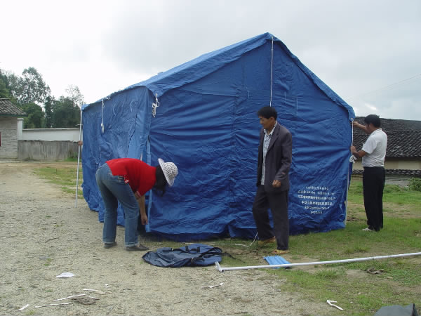 图为村民搭建帐篷