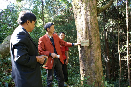 图为县野生动植物保护办人员到实地查看古树名木管护情况