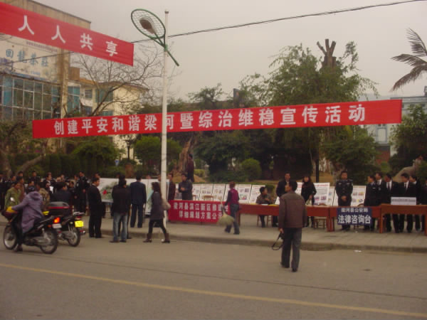 活动仪式上,县委常委、政法委书记李培忠同志作了动员讲话。他指出,09年是全面推进十一五规划的关键一年,全县各级各部门要围绕县委提出的“农业立县,工业强县,商旅活县”的发展思路,按照“巩固提升,强化基础,稳步推进,开放搞活,常抓不懈”的二十字要求,紧紧围绕“保增长、保稳定、保民生”这条主线,进一步推进各项工作。一是要继续保持高度的政治责任感,切实把维护社会稳定当做头等大事抓紧抓好,确保我县经济社会和谐快速发展。二是要进一步强化信息预警,全面、及时、准确地做好各类信息的收集、汇总、梳理、分析,以群众满意为标准,及时调解人民内部矛盾。三是要全面深化新三年禁毒防艾人民战争认识,保持禁毒防艾的高压态势,连续作战,攻坚克难,确保禁毒防艾工作取得新实效。四是进一步加大对治安突出问题的整治,提高人民群众的安全感,巩固平安县创建成果;五是要严厉打击“法轮功”、“门徒会”等邪教组织的捣乱、破坏活动,有效防止邪教组织串联、聚会。六是要继续做好矛盾纠纷排查化解工作,及时化解各类矛盾纠纷,特别是涉法涉诉矛盾纠纷,最大限度地把各类不稳定因素化解在萌芽状态。