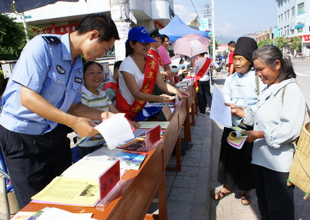 当天上午8:30分,参加活动的各部门组织人员来到宣传点,搭起宣传咨询台、立起宣传展板,围绕宣传主题,以安全生产法律法规、安全知识为宣传重点,以发放宣传资料、展出展板的方式向过往群众开展安全知识宣传。宣传内容涉及道路交通、消防、生产安全、食品药品、建筑施工等方面的法律法规和安全知识,以及遭遇地震、火灾、地质灾害等自然灾害时紧急避险自救、逃生常识等。活动现场展出的道路交通安全宣传展板、消防安全宣传展板和农机安全事故图片展板吸引了众多的行人驻足观看,一幅幅触目惊心的画面,深深地触动了前来观看的群众,使他们深受教育。据统计,活动当天共出动宣传车10辆次,出动宣传人员45人次,展出宣传展板42块,发放各种宣传单、挂图、法律法规文本等宣传资料10000多份(册),受教育群众达1000多人次。