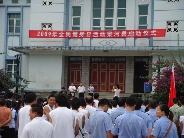 上午8点,来自全县40多家单位1000多名干部职工聚集在县城中心文化广场,参与我县2009年全民健身活动启动仪式。县委常委、宣传部部长梁兆佩,县委常委、副县长陈留英等县级领导参加了活动,副县长陈留英在启动仪式上说,今年的