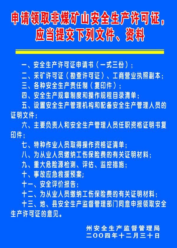 申请领取非煤矿山《安全生产许可证》应当提交的文件资料