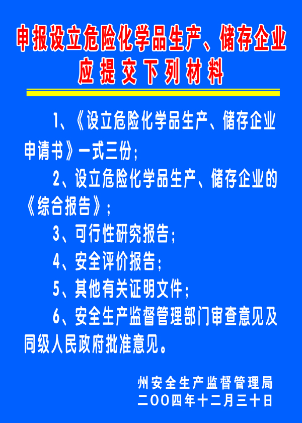 申请设立危险化学品生产、储存企业应提交的材料