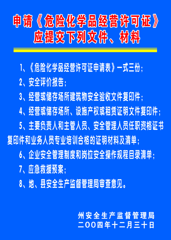 申请《危险化学品经营许可证》应提交的文件材料