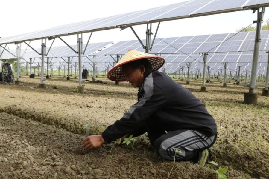 村民在光伏基地下种植中药材。(2022年4月摄)