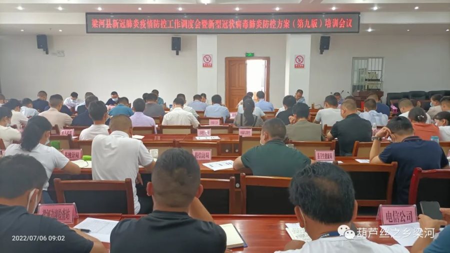 7月6日上午,梁河县召开新冠肺炎疫情防控工作调度会,进一步了解目前全县疫情工作情况及存在的问题,对下一步防控工作进行再研究再部署,对新冠肺炎疫情防控方案(第九版)进行培训。