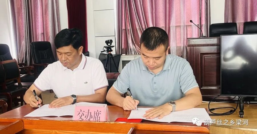 何胜富与县自然资源局、县住建局、县交通运输局等8家承办单位签订了梁河县重大项目建设问题交办单。