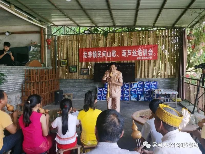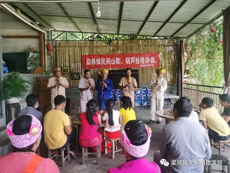 2022年7月27日由勐养镇民间团队组织、梁河县文化和旅游局协助举办了一期发自群众内心需求的“傣族民间山歌、葫芦丝演奏培训”。